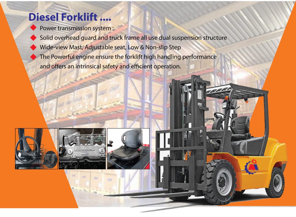• High performance engine like Isuzu, Mitsubishi, Yanmar, Xinchai  for diesel forklift with EUIIIB/EUIV/EPA standards, which is high work efficiency, lower fuel consumption and low emission levels.